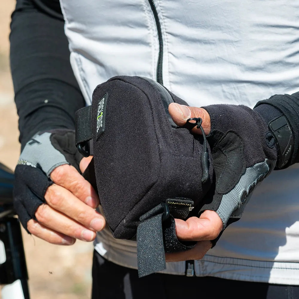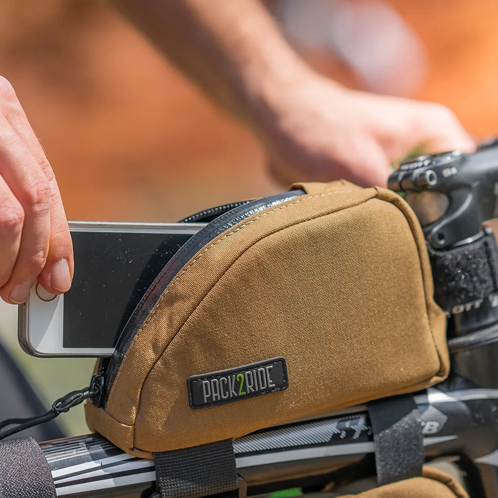 Useful and secure top tube bag. Your phone, cables, energy bars and snacks are at your reach. Easily open and close with one hand while riding on the saddle.