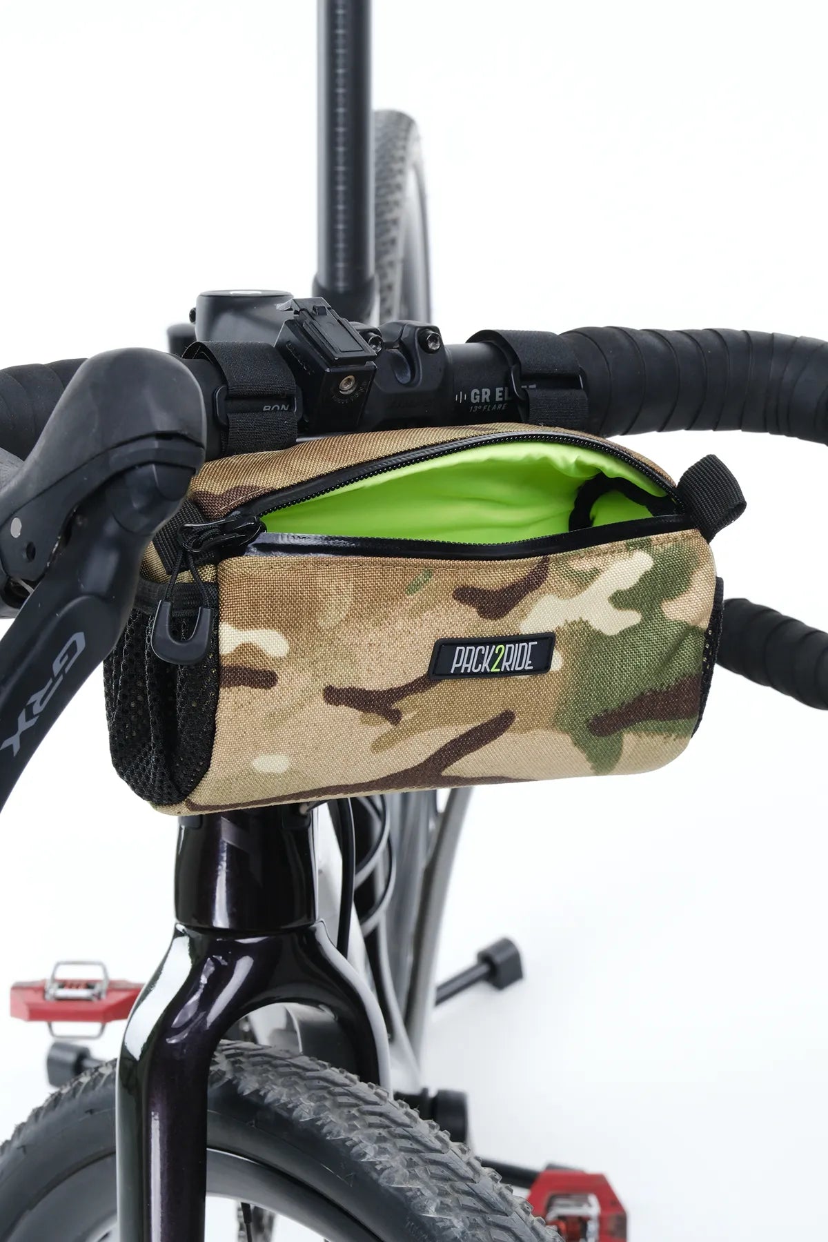 • Padded on all surfaces, keeps the bag content safe. It is firmly fixed on the handlebar with two sturdy straps and flexible shock cord attachment to the head tube. It does not sway or move even on uneven ground. The ideal bag for gravel and adventurous trail riding.
