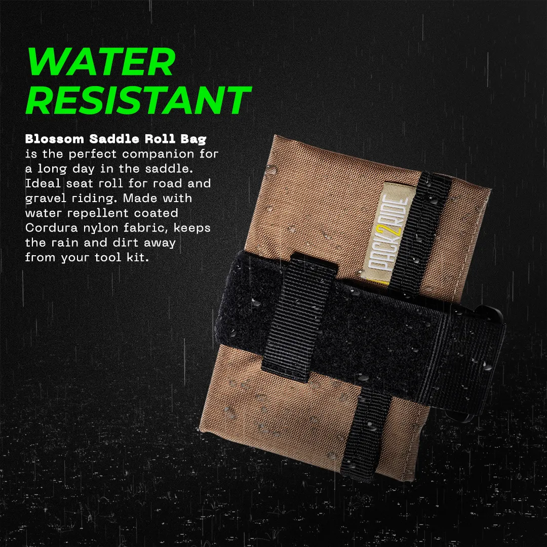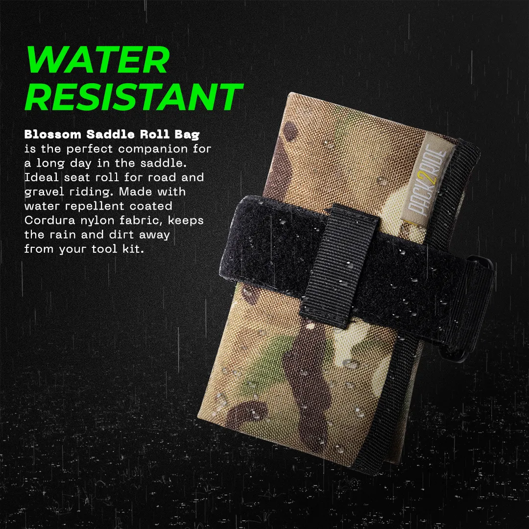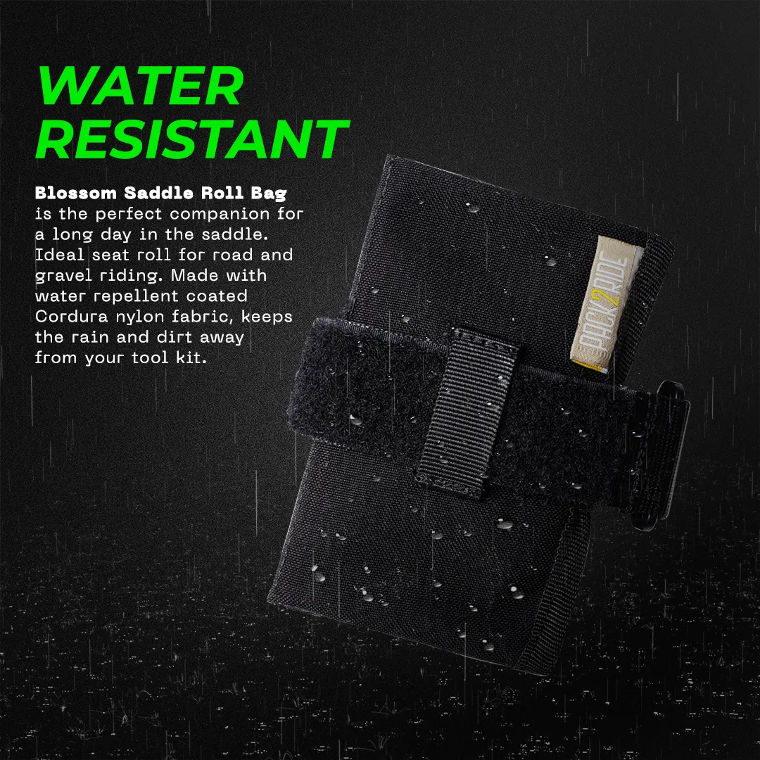 Blossom is the perfect companion for a long riding day. Ideal saddle roll bag for Road & Gravel Riding. Keep your tools and spares under your saddle and remove the weight out of your jersey pockets.